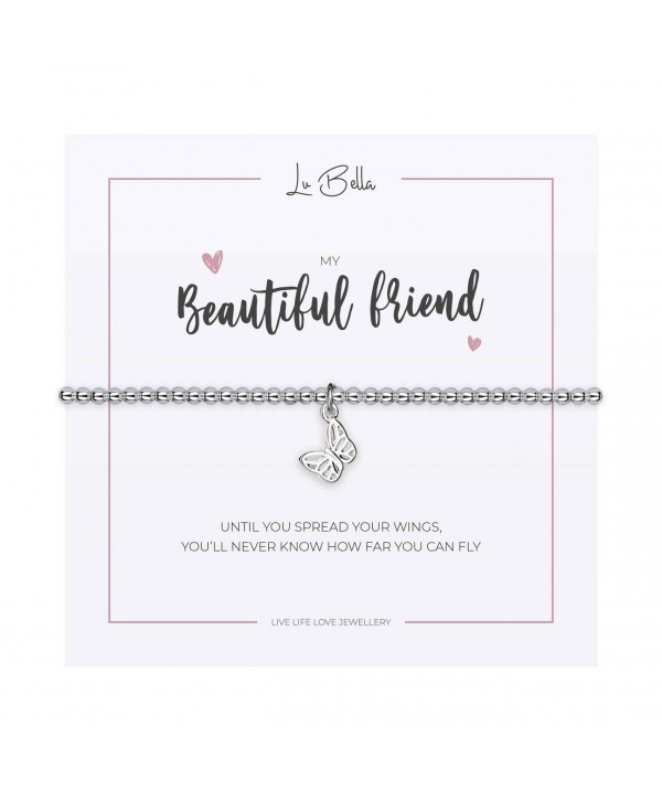 A stretchy (17.5cm) 3mm silver plated beaded bracelet with Butterfly charm on a lovely sentiment card that reads 'Until you spread your wings, you’ll never know how far you can fly'.