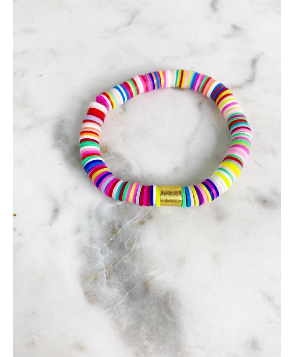 8mm heishi vinyl disc stretchy bracelet with a brushed gold accent. Great to wear as a single or stacked set!