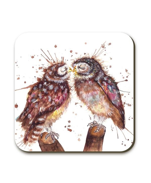 Splatter Loved Up two kissing owls by Katherine Williams is made of cork-backed MDF hardboard,
