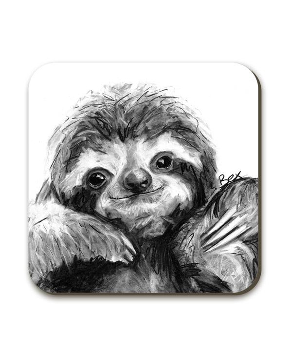 Sloth coaster by Bex Williams is made of cork-backed MDF hardboard, with a matt-laminated vinyl print,