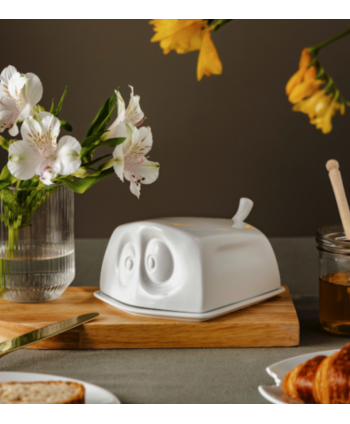 and because our butter dish is a little higher than the average version, you can hide not only a standard 250 g piece of butter under it, but also like a slightly larger chunk of smooth butter.