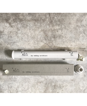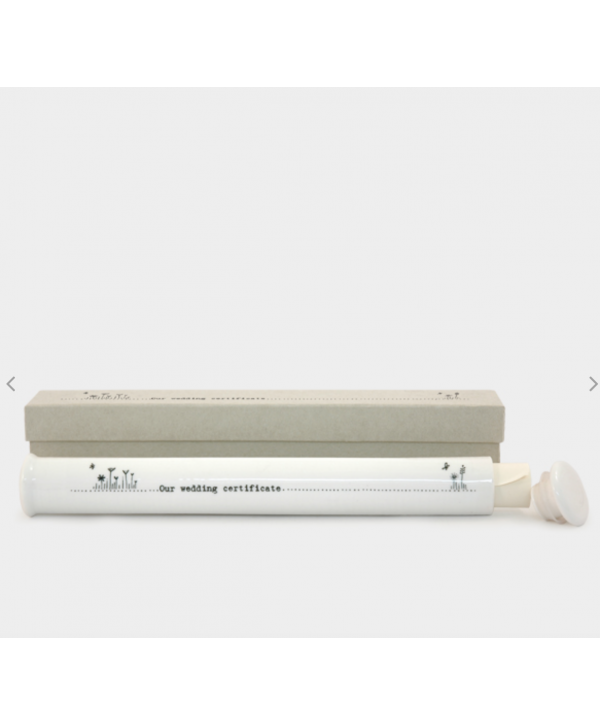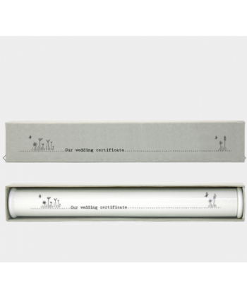 Gorgeous porcelain wedding certificate holder it has beautiful graphics of cute flowers and the words 'our wedding certificate'